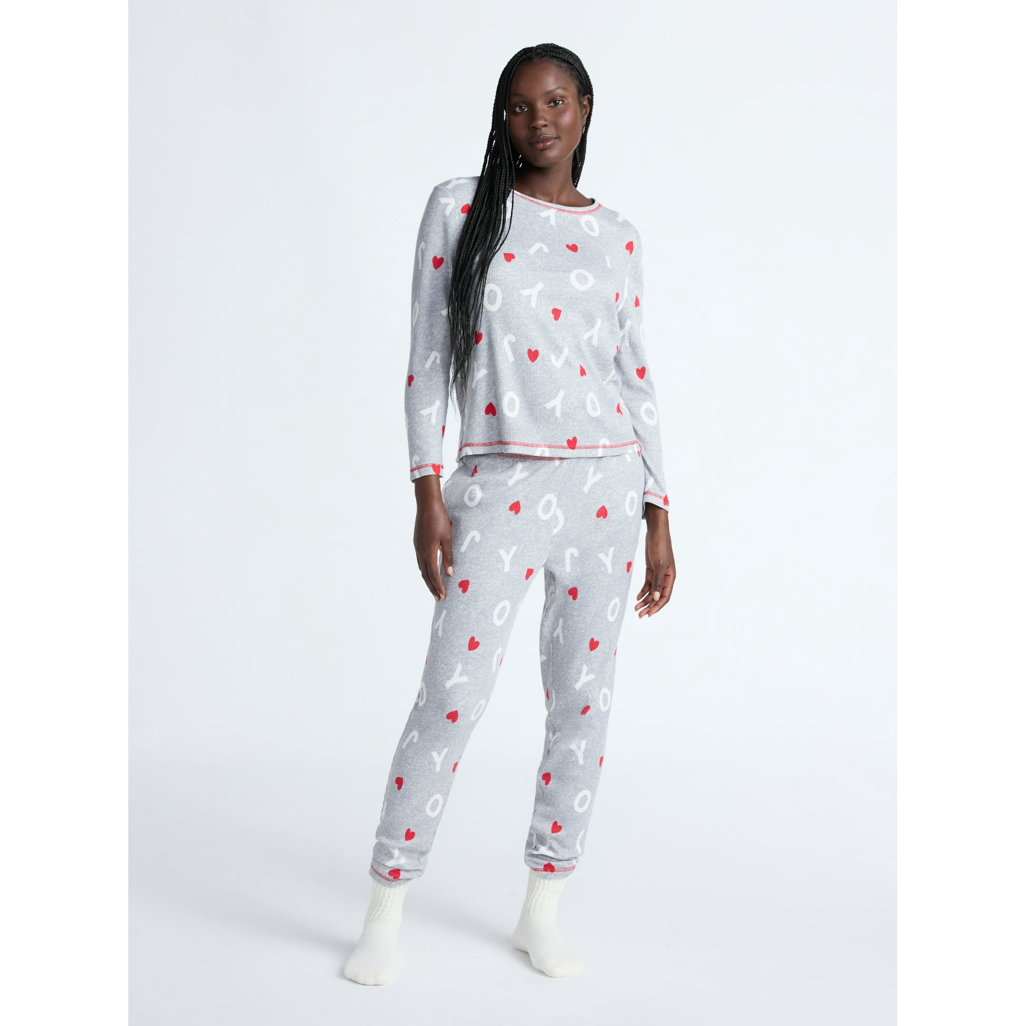 58% Off Women's Waffle Knit Long Sleeve Top and Joggers Pajama Set